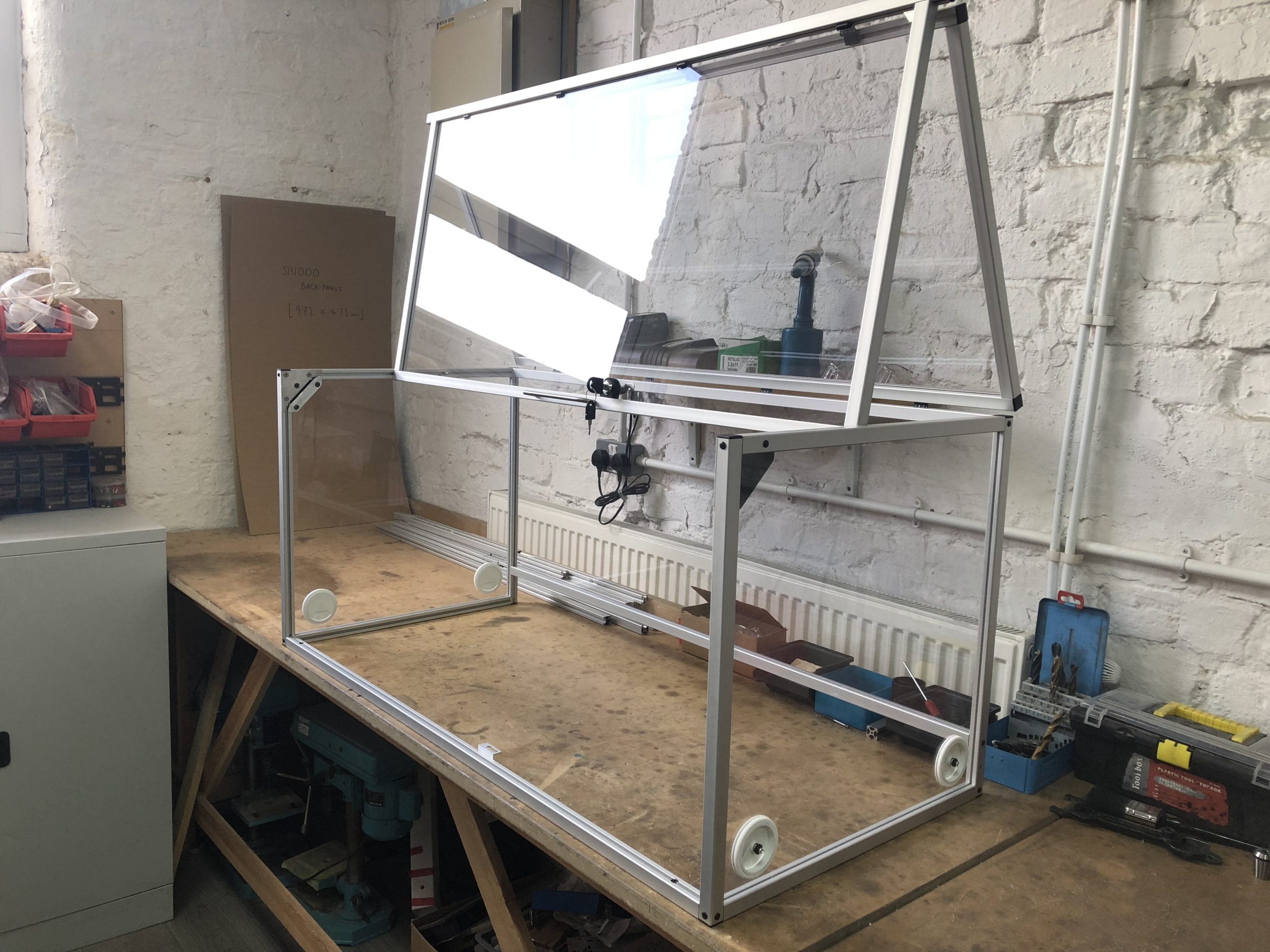 Requested by one of the UK’s biggest pharma companies, these units had top mounted extraction, built in interior light, special powder coated white frame, low flow alarm and PVC spill tray base. These enclosures were designed to the customer’s specific requirements with a total order of 18 units.