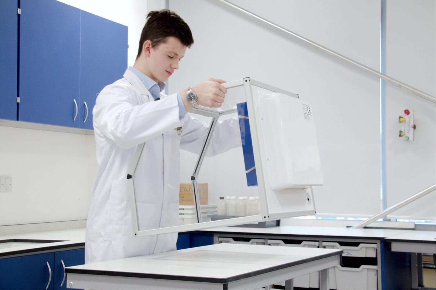 – Having a safety enclosure which is designed to be installed simply by lifting it out of the box and placing it onto the bench circumvents the challenge of having similar safety enclosures installed which may need to be physically built into your premises.