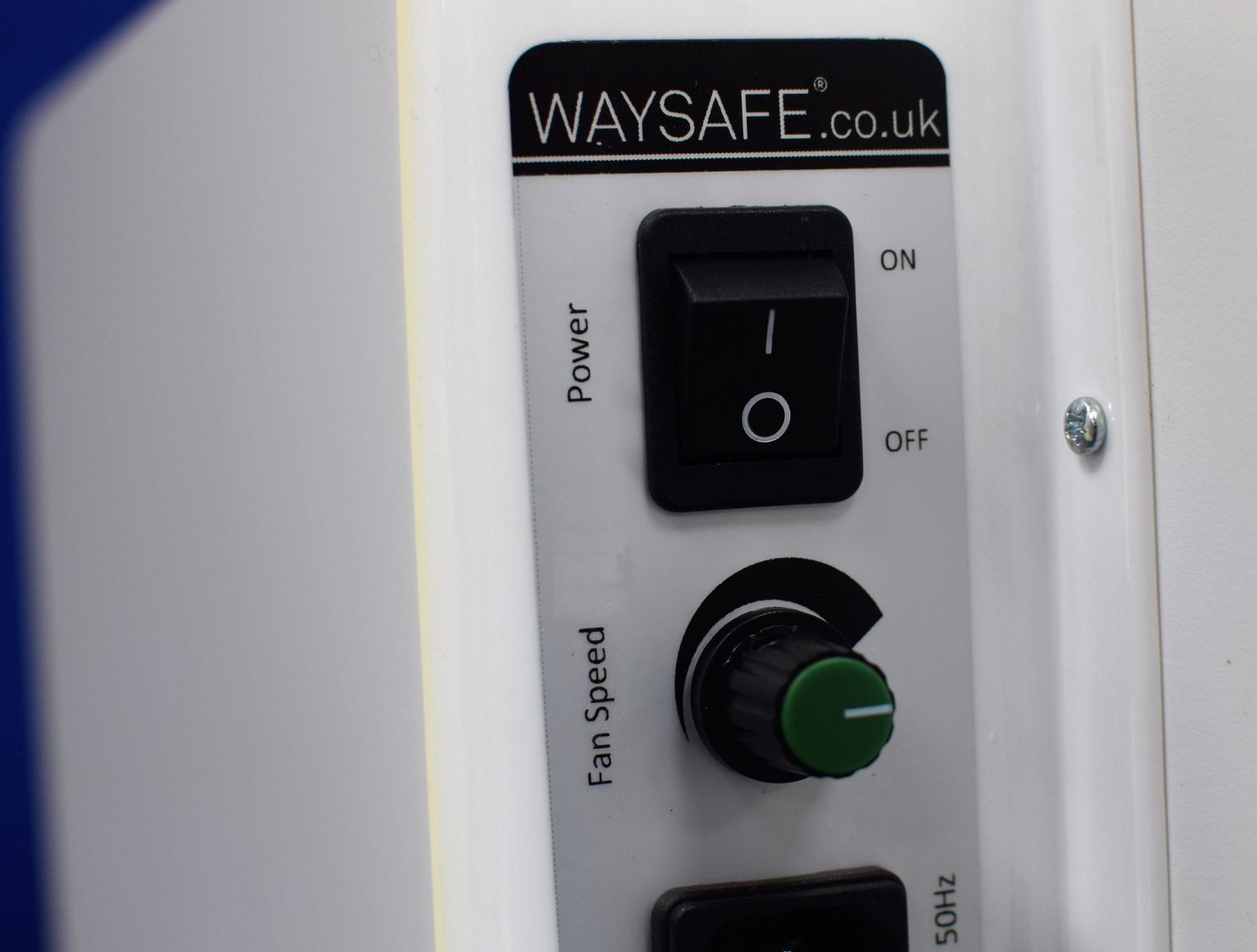 Allows users to target specific face velocity and compensate when filter flow starts to drop. Lower fan speeds mean quieter and more efficient running too! We fit a speed control knob next to the on/off switch on the rear of the unit.